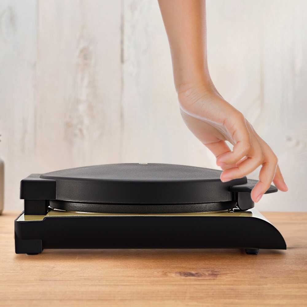 - Продуманная конструкция с бортиками вокруг рабочей зоны предотвращает растекание теста или жира на стол, локализуя загрязнения на самом приборе и упрощая уборку.