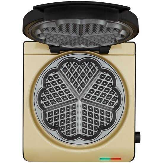 Компактный и удобный дизайн, который не занимает много места на кухне. Хорошее качество антипригарного покрытия, вафли не прилипают и легко очищаются. Вафли получаются ровными и симметричными благодаря продуманной форме