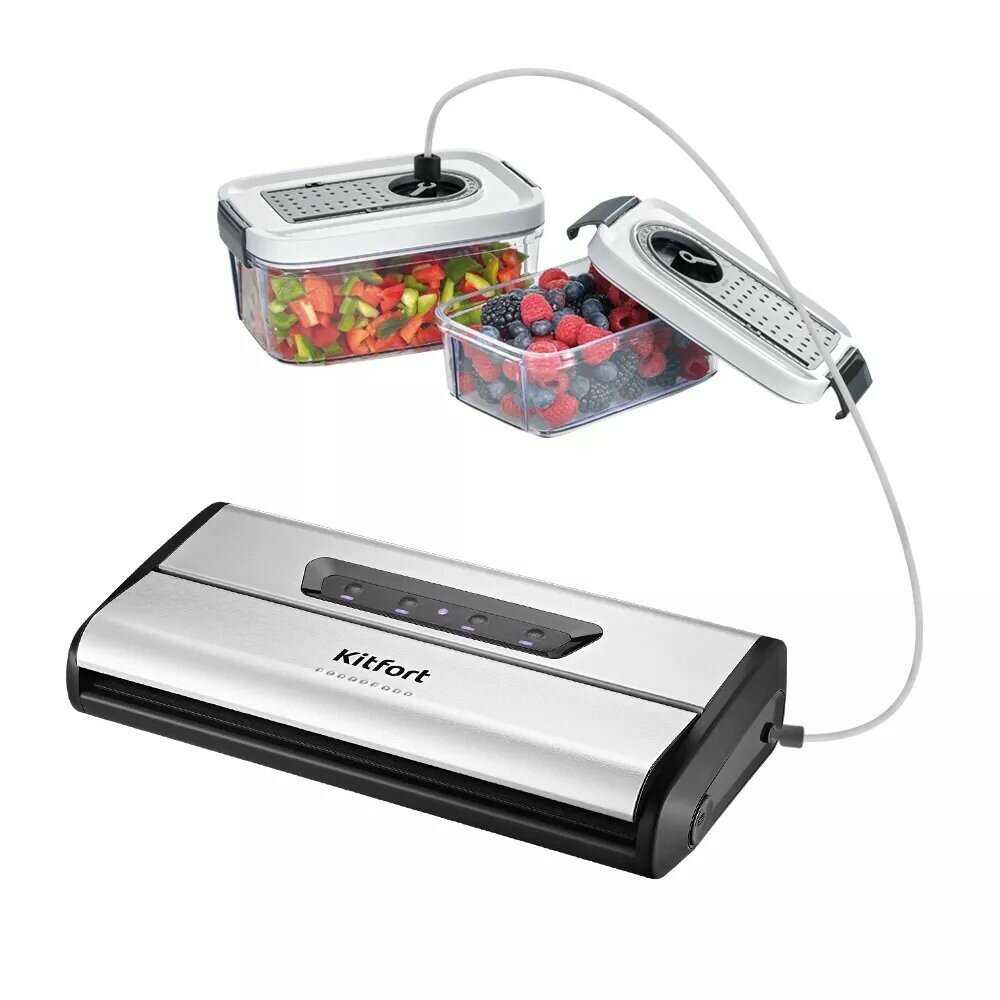 Купили данный агрегат для улучшения сохранности продуктов в морозильной камере. Выбирали по совокупности характеристик, отзывов и своих представлений о прекрасном. Результатом стал Китфорт, обладающий максимальной универсальностью по параметрам ширина пайки/давление/вакуумирование контейнера. В доме это второй аппарат данной фирмы, первым уже больше двух лет трудится планетарный миксер(замечательная, кстати, штука). Сам вакууматор сделан красиво, аккуратно. Использовали пока немного, всё-таки время заготовок ещё не началось. Впечатления положительные. Комплектом идут пакеты, мы брали дополнительно рулон. Как пользоваться просто и доходчиво описано в инструкции. Ну и немаловажный момент - не занимает много места. Покупкой довольны.