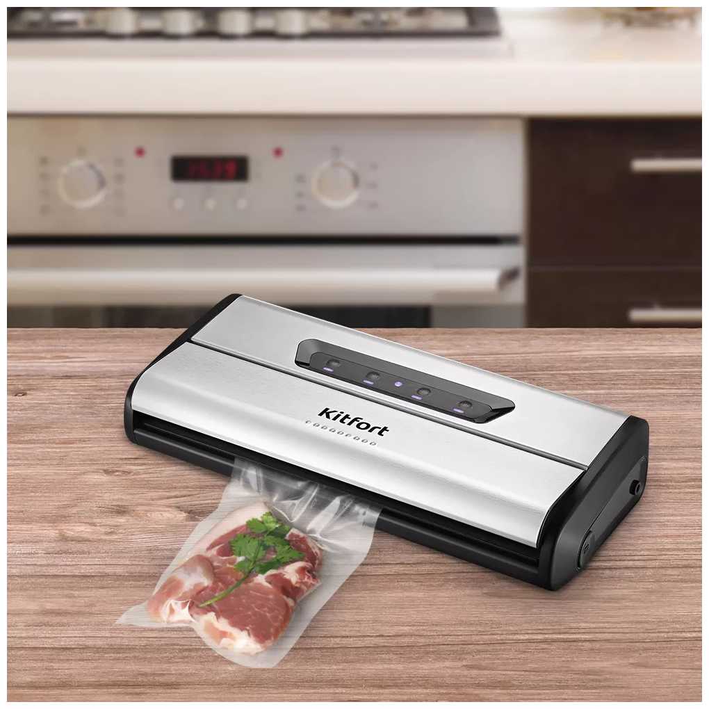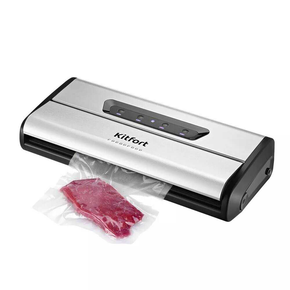 Купили данный агрегат для улучшения сохранности продуктов в морозильной камере. Выбирали по совокупности характеристик, отзывов и своих представлений о прекрасном. Результатом стал Китфорт, обладающий максимальной универсальностью по параметрам ширина пайки/давление/вакуумирование контейнера. В доме это второй аппарат данной фирмы, первым уже больше двух лет трудится планетарный миксер(замечательная, кстати, штука). Сам вакууматор сделан красиво, аккуратно. Использовали пока немного, всё-таки время заготовок ещё не началось. Впечатления положительные. Комплектом идут пакеты, мы брали дополнительно рулон. Как пользоваться просто и доходчиво описано в инструкции. Ну и немаловажный момент - не занимает много места. Покупкой довольны.