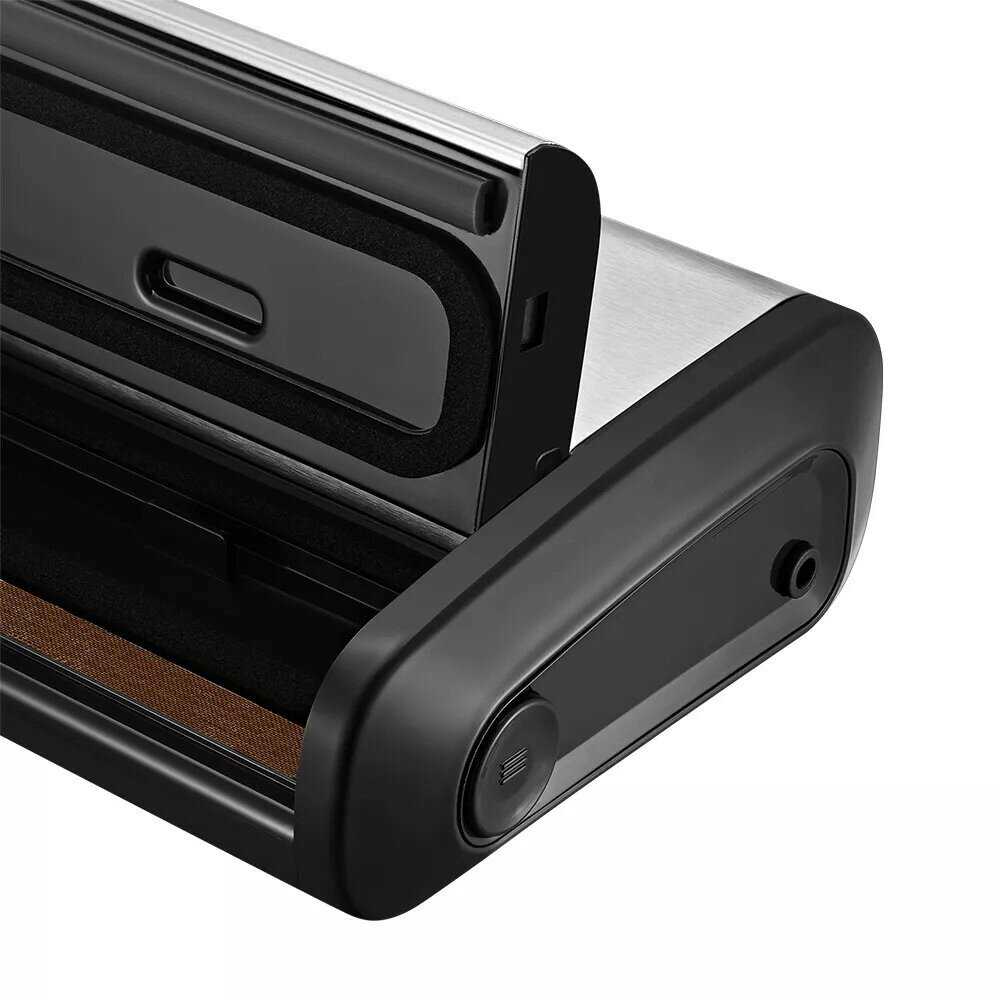 - Встроенный нож для рулонной пленки упрощает нарезку пакетов нужного размера.