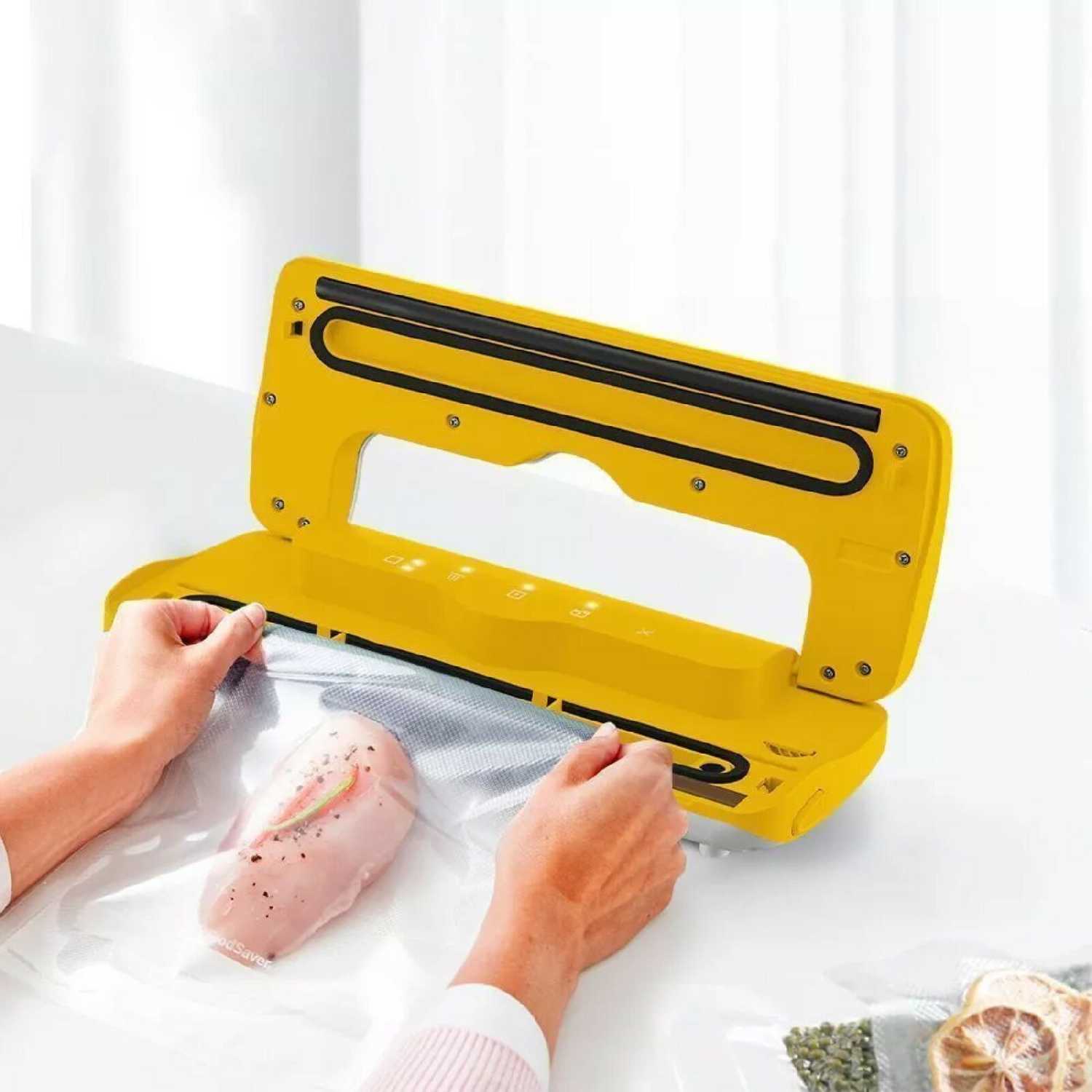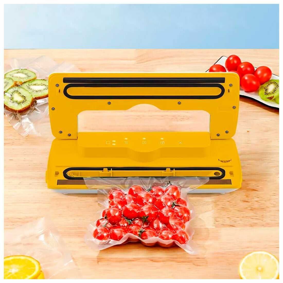 К моей кухне идеально вписывается по цвету. Кухня в желтых и белых тонах. Очень компактный. Доходчивая инструкция. Устраивает ширина платформы. Для недорогого вакууматора достаточно мощный компрессор. Есть съемный контейнер для жидкости. Сенсоры работают отлично.