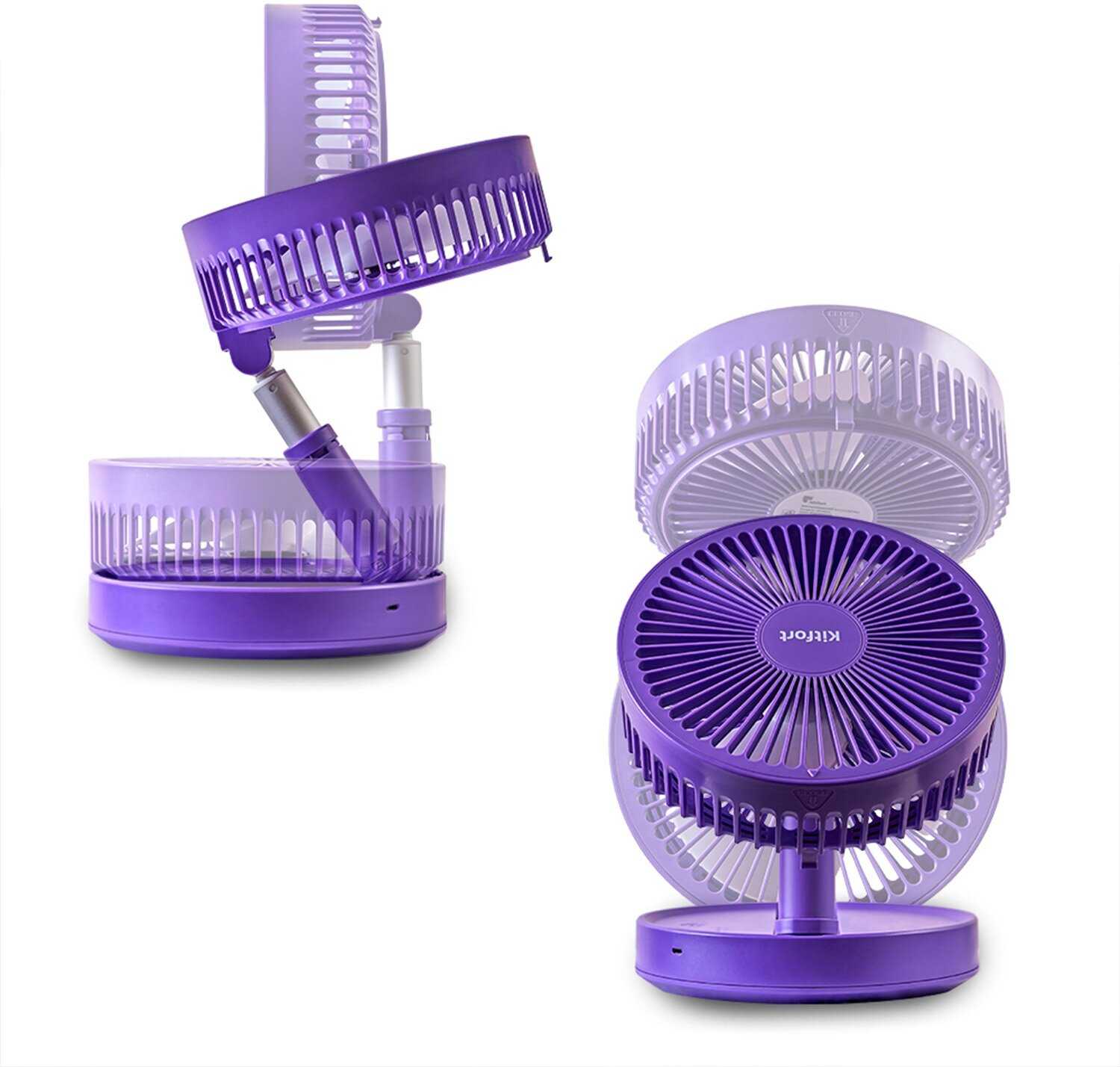 - + Есть возможность регулировать угол наклона и высоту вентилятора, автономная работа, красивый необычный цвет