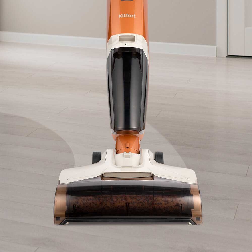 Многие хвалят самодвижение вперед благодаря колесам и валику, поворотную ручку на 142° для маневров под мебелью выше 15 см, но не складывается полностью для прохода под кроватью или диваном ниже 5-15 см. Вес 4-5 кг ощутим для женщин, детей, подростков и пожилых — болит рука при длительной уборке, тянет назад при наклоне. Не достает 2-3 см вдоль плинтусов, стен, углов и столов из-за ширины щетки, оставляя полосы, требует предварительной подготовки поверхностей.