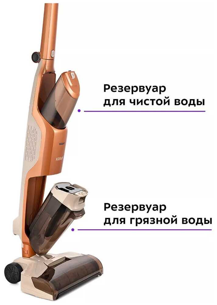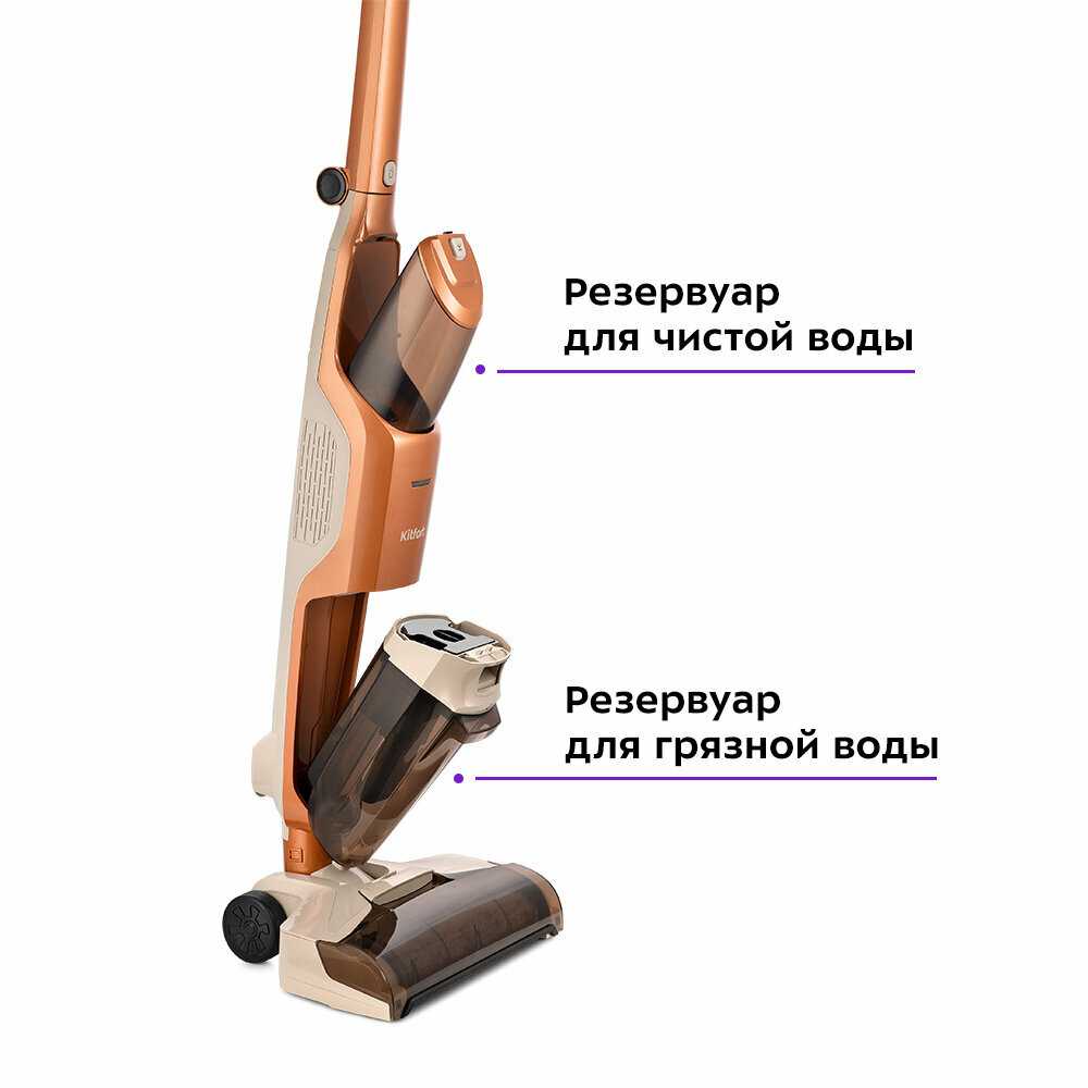 - + • Удобная сухая и влажная уборка без проводов. Беспроводная конструкция избавляет от неудобств с кабелем, а сочетание всасывания и подачи воды позволяет быстро убирать как сухую пыль, так и жидкие загрязнения .