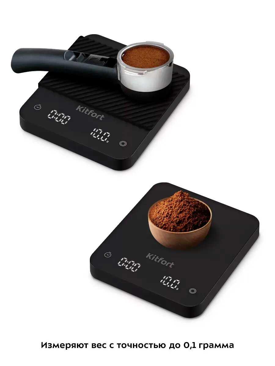 - + Кофейные весы Kitfort KT-843 — отличный выбор для тех, кто любит варить кофе дома и стремится к идеальному соотношению ингредиентов. Устройство компактное, легко помещается даже на небольшой кухне. Весы оснащены большим цифровым дисплеем, на котором хорошо видны показания веса. Они быстро откликаются на изменения массы продукта и позволяют точно дозировать количество молотого кофе и воды.