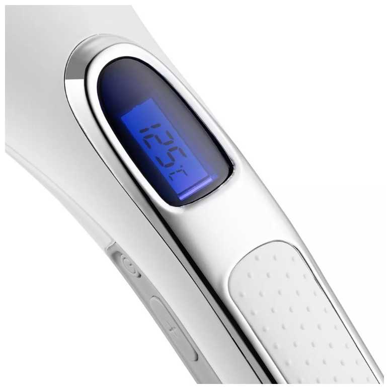 - Дисплей отображает текущую температуру в диапазоне 80–230°C, позволяя подбирать режим для тонких или густых волос.