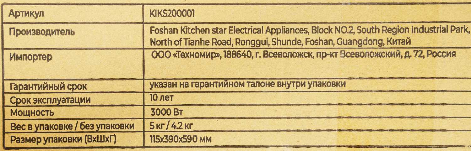 Характеристи Kitll KHH 3001