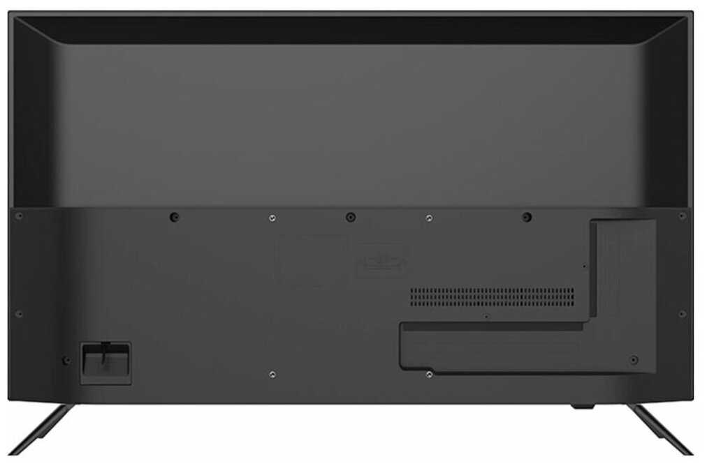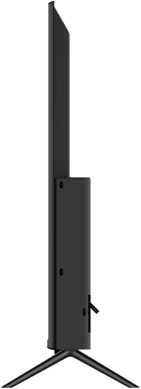 Телевизор выделяется ультратонким корпусом (менее 1 см по краям) и почти безрамочным дизайном – это упрощает интеграцию в интерьер как при настенном монтаже, так и на тумбе. Ножки с резиновыми накладками обеспечивают устойчивость даже на гладких поверхностях, а разъёмы (3xHDMI, USB, Ethernet) логично сгруппированы на задней панели. Критику вызывает лишь вертикальное расположение портов: для частого переподключения флешек или кабелей требуется физический доступ к тыльной стороне. Пульт с эргономичными крупными кнопками удобен в использовании, но ИК-датчик (в базовой версии) требует точного наведения на ТВ-приёмник. Раздражающий фактор – несъёмная синяя LED-лампочка, светящаяся в режиме ожидания.