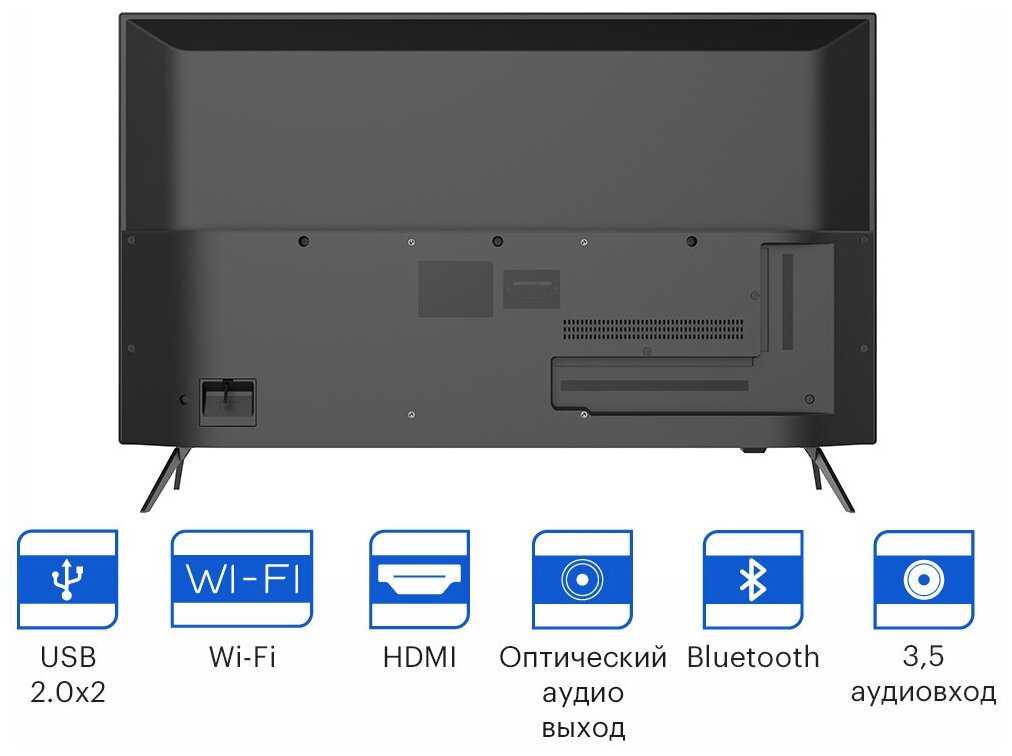 - Отсутствие боковых USB-портов — для доступа приходится снимать телевизор с кронштейна.