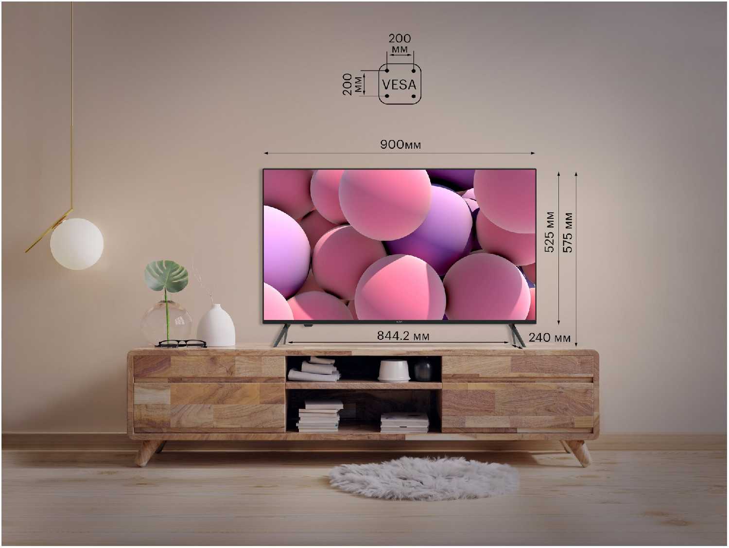 - Толщина корпуса — 7.8 мм, что позволяет легко разместить телевизор на стене.