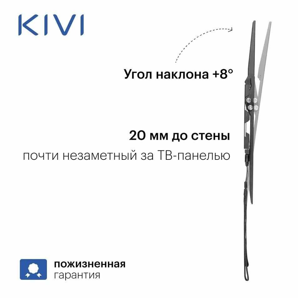Кронштейн купил недавно. Выбрал из-за цены, наличия пружинных замков, прочной конструкции. Установка не заняла много времени, специальных навыков не требуется, достаточно посмотреть инструкцию. Качество материалов и сборки на высоте - кронштейн не скрипит и не гнется даже при максимальных нагрузках. Отдельно хочется отметить стильный дизайн, который впишется в любой интерьер. Я очень доволен своим выбором и рекомендую Кронштейн KIVI Basic-46T всем, кто ищет надежное и функциональное крепление для своего телевизора.
