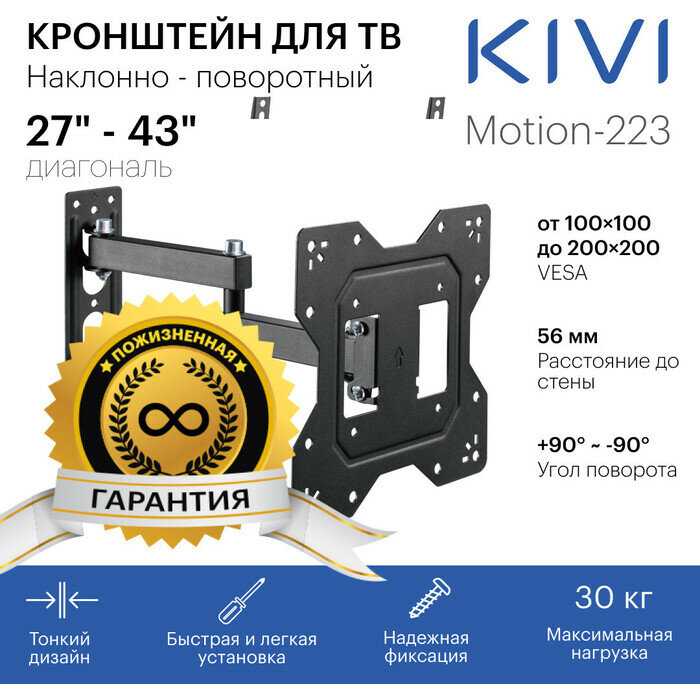 - + хорошее качество металла из которого изготовлен кронштейн, удобный поворотный механизм, есть инструкция как собрать и установить кронштейн, цена не слишком высокая
