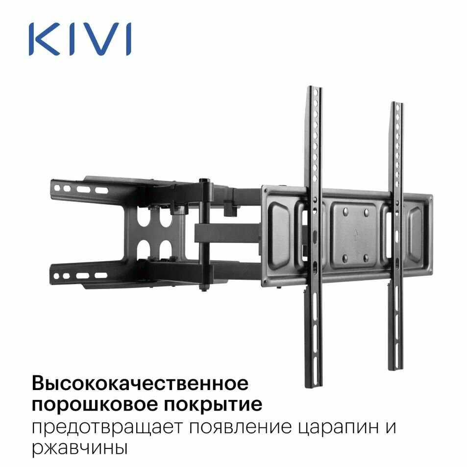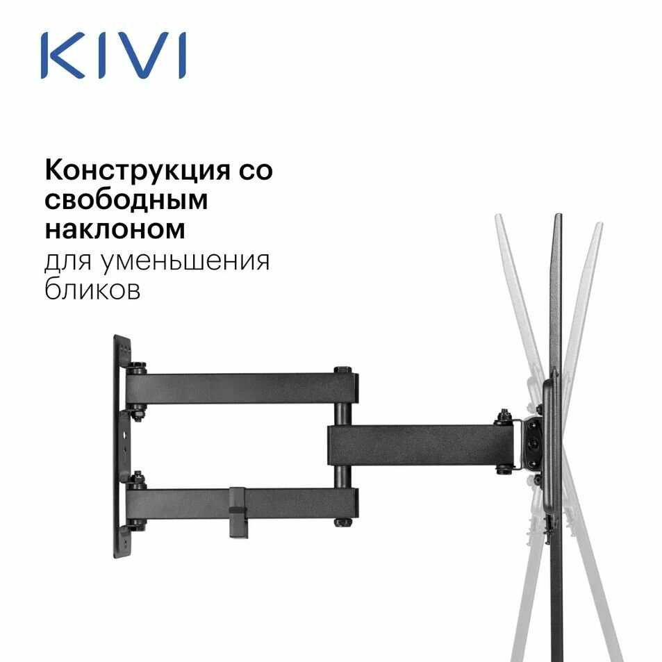 - + Остался очень доволен покупкой кронштейна! Качество на высоте: прочная конструкция, надежные материалы, все детали выполнены аккуратно. Установка прошла легко благодаря понятной инструкции и продуманной конструкции. Кронштейн выдерживает мой 55 дюймовый телевизор без малейших нареканий, при этом позволяет удобно регулировать угол наклона и поворот. Отдельно хочу отметить доступную цену за такое качество. Рекомендую к покупке отличное соотношение цены и качества!