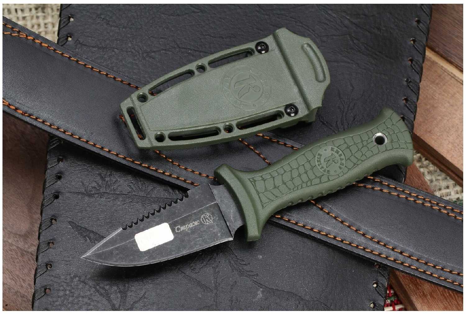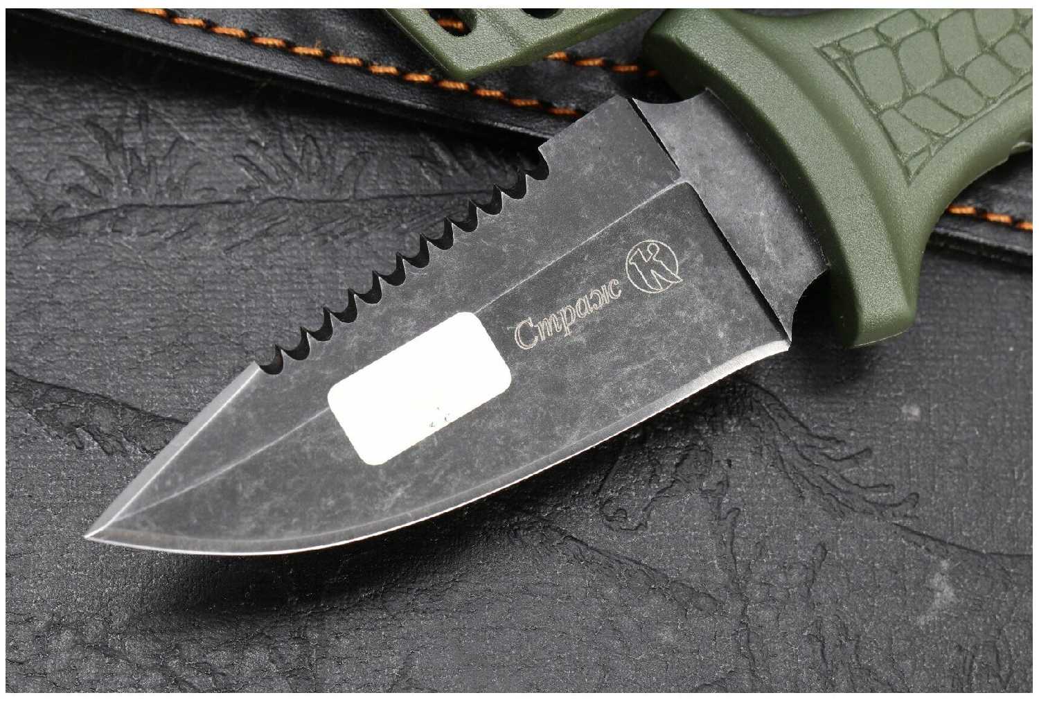 - + Нож Страж отличный , удобный , острый - консерву откроет на раз , незаменимый помощник в походах , и на рыбалке, наличие серейтора без проблем облегчит чистку чешуи таких рыб как окунь, ёрш, щука. Нож можно удобно закрепить на ремне, на плече, из-за небольших его размеров положить в карман, повесить на шею.