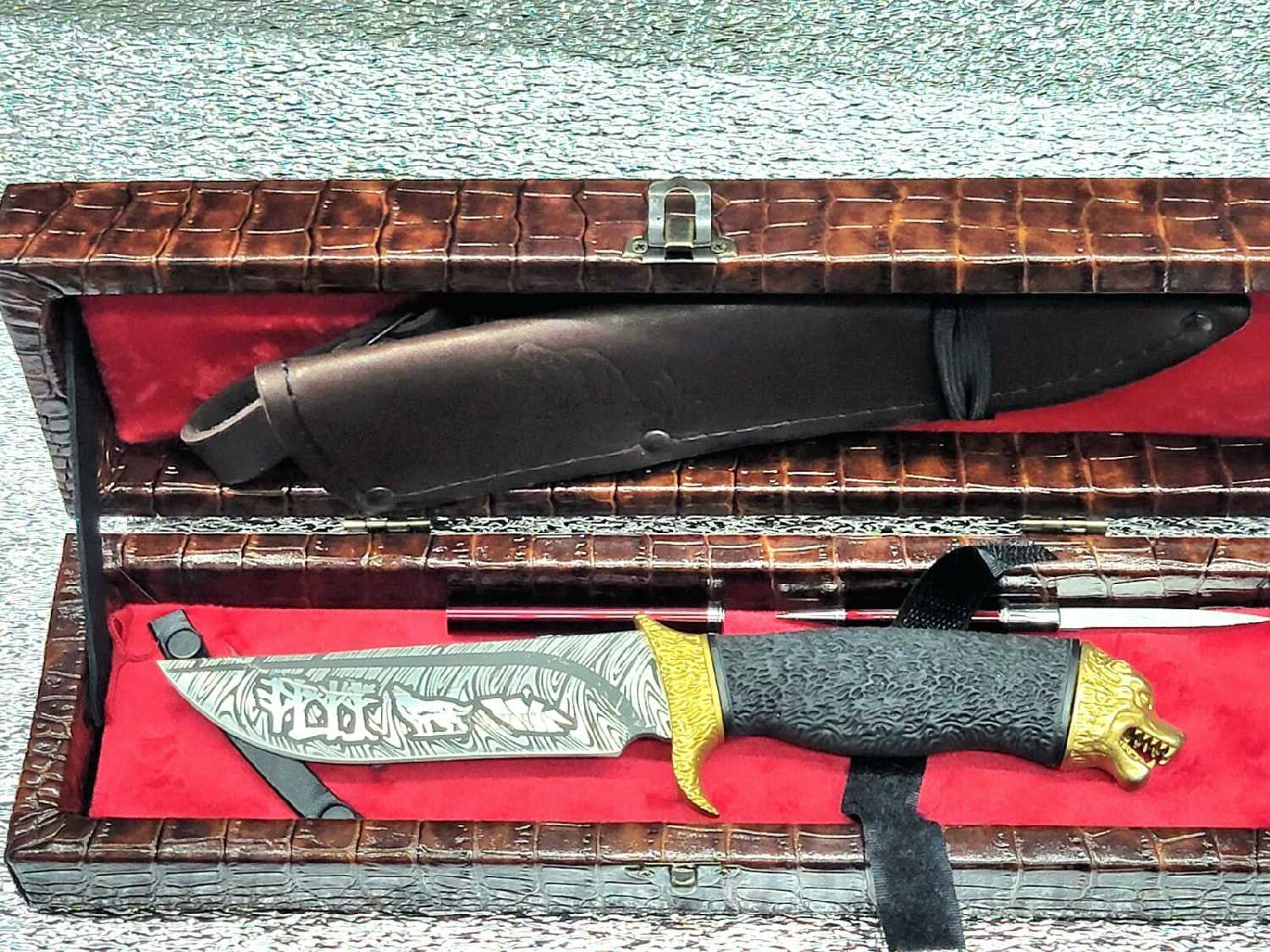 | Дополнительная информация : | Нож с чехлом в подарочном футляре и ручка -нож красная |