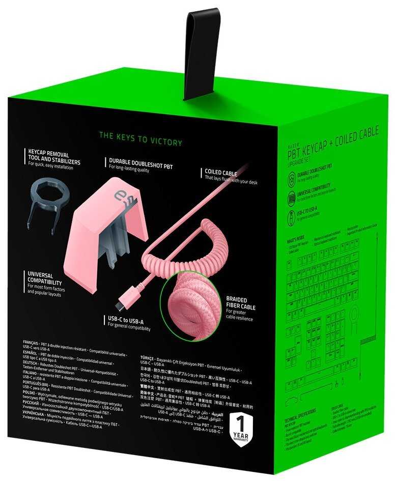 Razer PBT Keycap + спиральный кабель USB Type-C Upgrade Set, Quartz Pink, US/UK