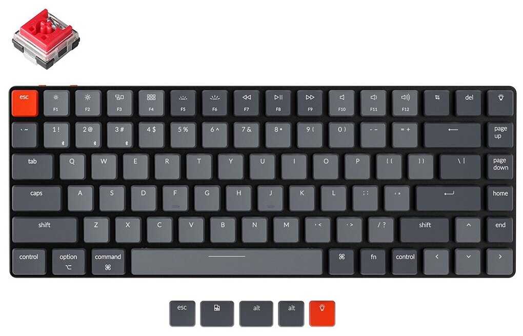 Keychron K2, 84 клавиши, RGB подсветка, Gateron Red Switch серая