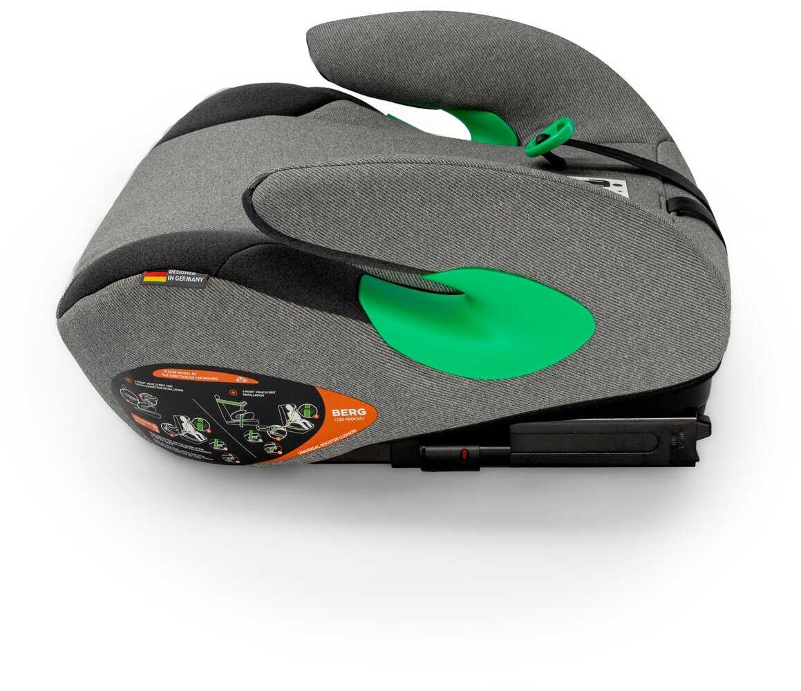 Бустер оснащен уникальной системой адаптации: глубину сиденья можно корректировать по мере роста ребенка. Дополнительно предусмотрена боковая подвижность ("двигается влево-вправо"), позволяющая ребенку менять позу. Зеленый направляющий ремень фиксирует автомобильный ремень безопасности на правильном уровне плеча. -