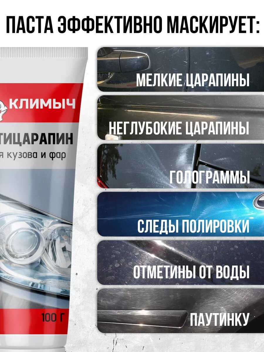 | Дополнительная информация : | Антицарапин восстанавливает прозрачность фар, полирует ЛКП кузова автомобиля. |