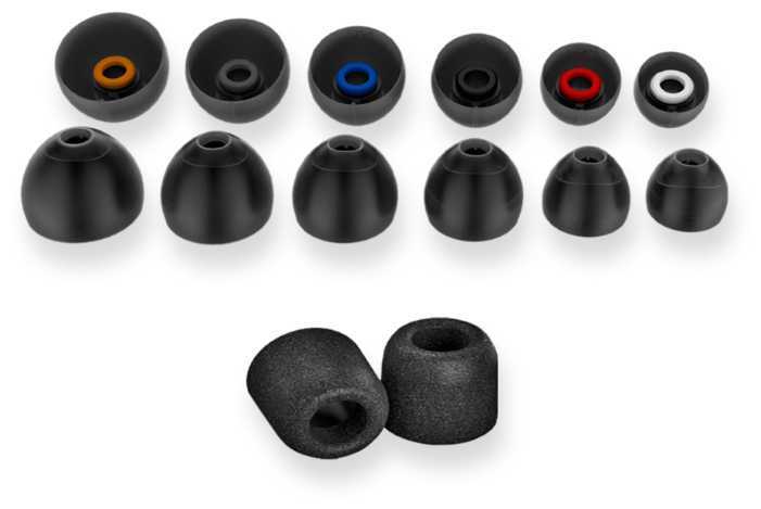- Овальные насадки (3-4 размера в комплекте) обеспечивают плотную посадку, блокируя внешние шумы в транспорте или офисе.