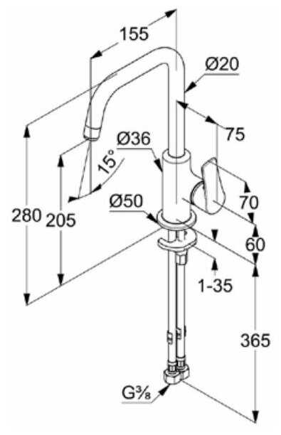 - высота излива: 205 мм.