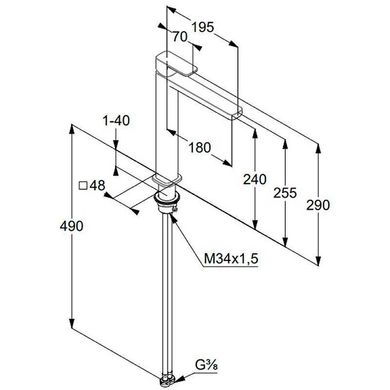 - высота излива: 200 мм
