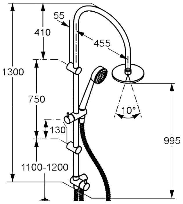 | Высота стойки для душа : | 1300 мм |