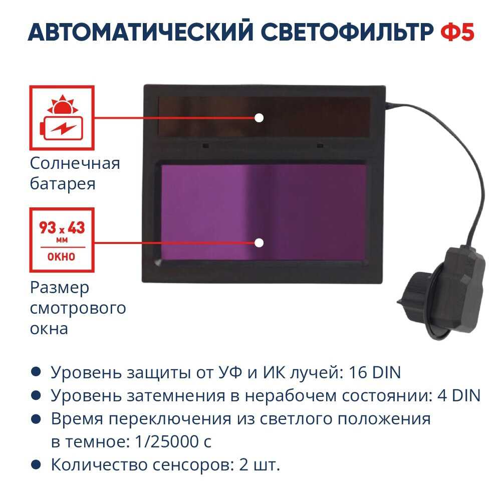 | Особенности : | защита от УФ/ИК лучей, защита от брызг расплавленного металла, ударопрочный материал, установка защитного стекла |
