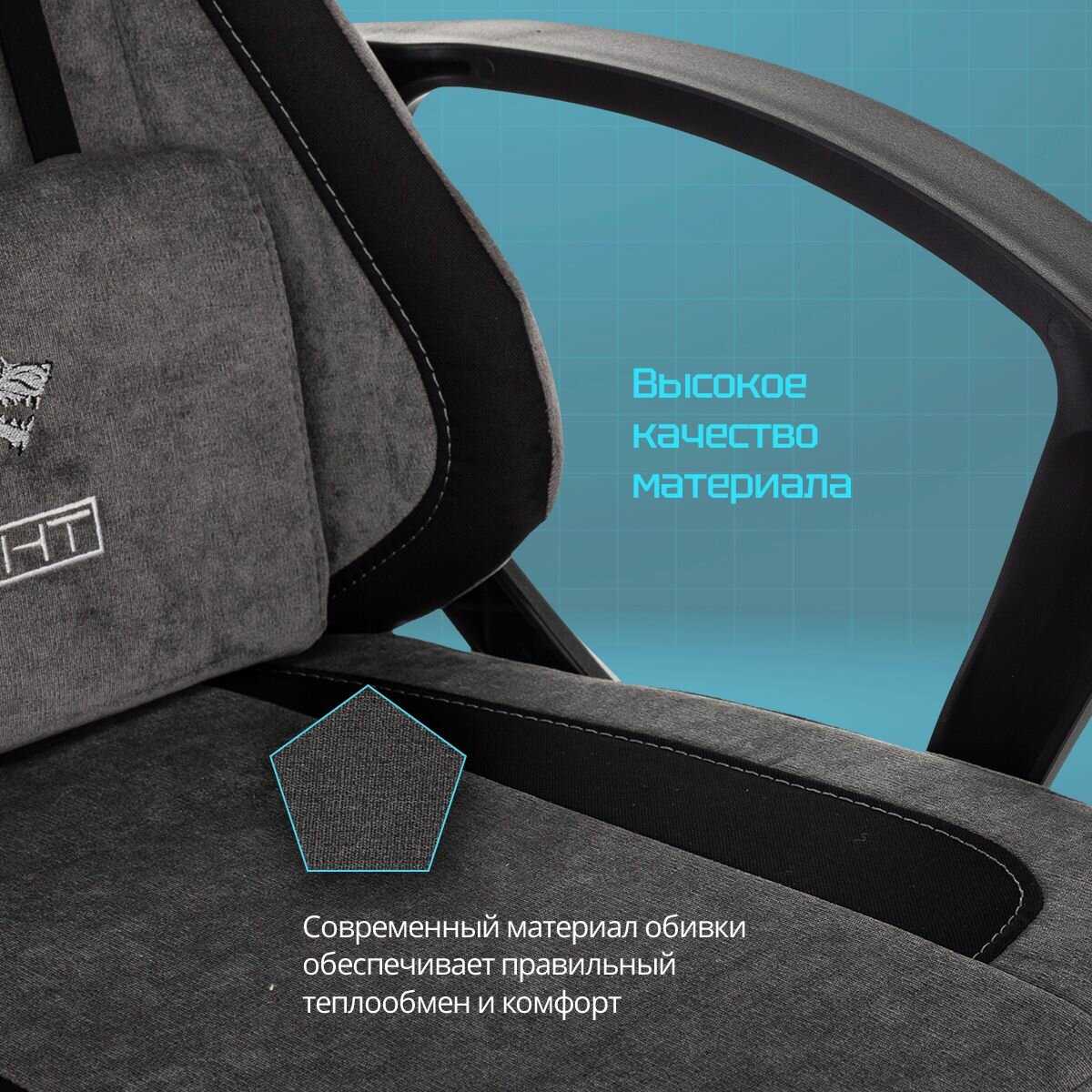 - Мягкий, дышащий материал обивки (полиэстер/сетка) предотвращает потение при эксплуатации.