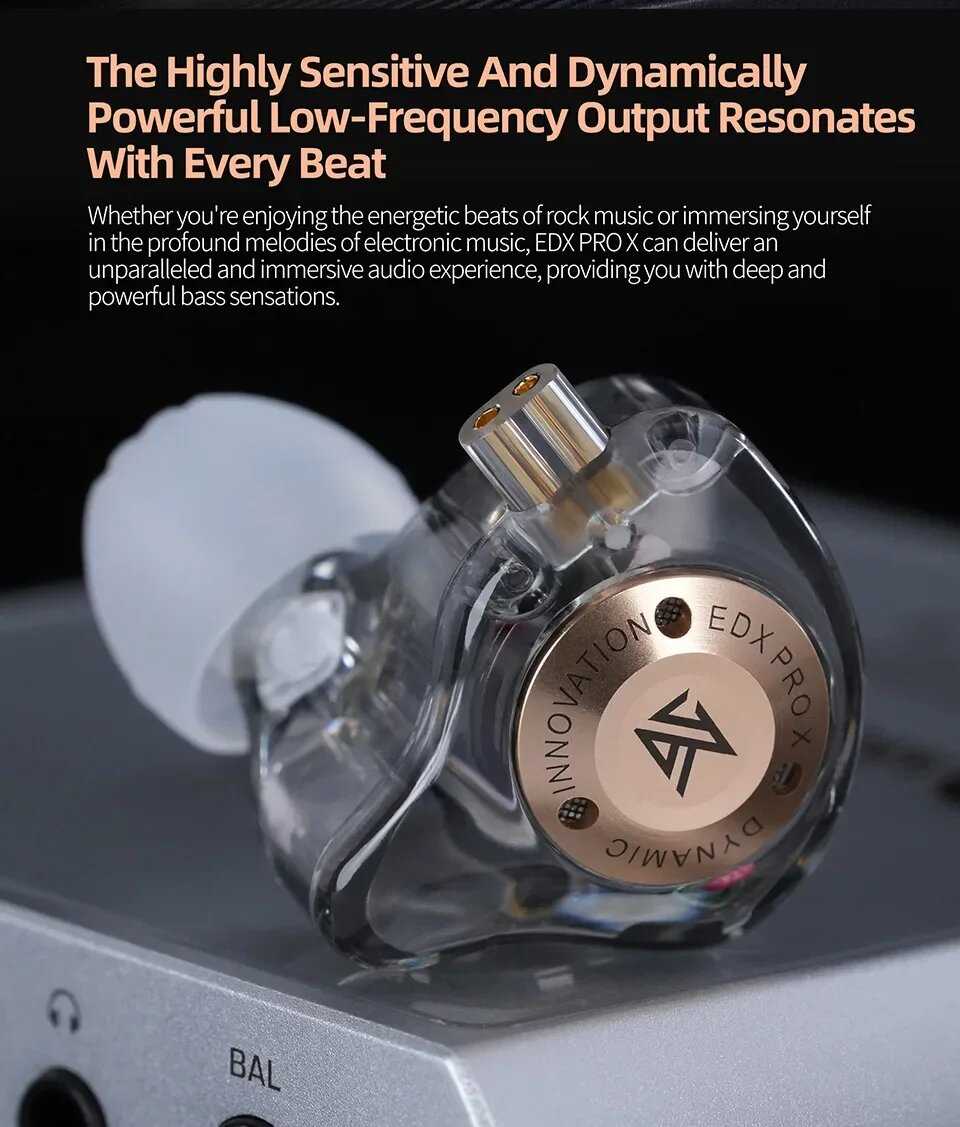 что сказать до них я покупал edx pro и был потрясен качество звука за 800 рублей, edx pro x это по сути улучшенный вариант edx pro тут звук более ровный в некоторых моментах например басс ощутимо слоистее чем в edx pro высоких так же многовато но слух они не режут скорее они подняли высокие в районе 8к - 12к что бы добавить яркости звуку при этом заниженний у них нет поэтому все звучит сбалансированно, сцена у них немного шире чем на edx ибо сзади есть отверстия, единственный минус это позиционирования, все инструменты звучат в одном месте грубо говоря и за этого акцентироваться на чем то одном не получиться что бы понять о чем я,говорю возьмите для примера kz pr3 или другие наушники с хорошем позиционированием и сравните. Тем не менее наушники имеют глубокий детализированный и яркий звук, к слову детализация тут лучше чем в kz zax ибо тут нет занижений после 10к герц в отличии от zax а басс звучит довольно слоисто хоть и немного выпирает саб басс с нижним бассом но это лучше чем завышенный басс на zax решил их упомянуть потому что я их купил не давно и разачаровался, повторюсь наушники стоят 800 рублей за свою цену они идеальны по звуку смело можно ставить 5 они у звучат лучше чем zax. Вообще лично я думаю лучшая модель у kz это kz pr3 но о ней я уже писал отзывах