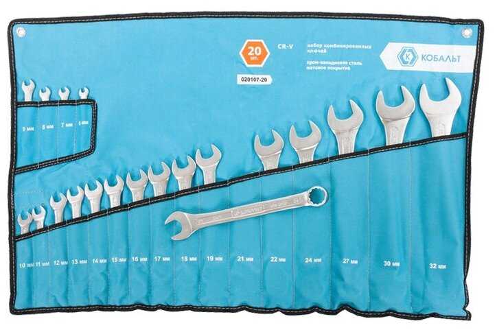 | Дополнительная информация : | Набор ключей комбинированных 20 шт. КОБАЛЬТ 020107-20, предназначен для отвинчивания/завинчивания резьбового крепежа с шестигранными головками при производстве строительных, электротехнических, монтажных и автосервисных работ. Изготовлены из хром-ванадиевой стали 31Cr-V, с закалкой рабочих поверхностей до 47-50 HRC. Защитное матовое хромовое покрытие ключей, нанесенное электролитическим способом, предохраняет от коррозии, улучшает внешний вид, при этом ключи не скользят в ладони в процессе работы. Небольшая толщина ключей позволяет отвинчивать узкие гайки и крепеж в труднодоступных местах. |