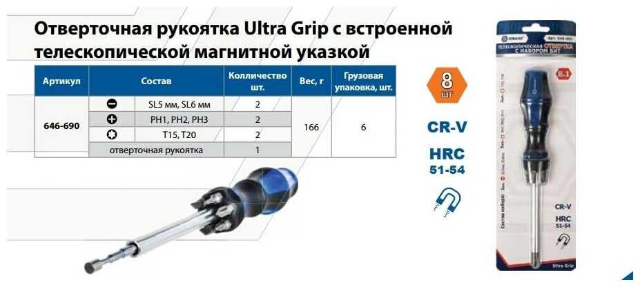 Удобная ручка, намагниченный наконечник,неплохой встроенный держатель для бит и телескопическая магнитная ручка.