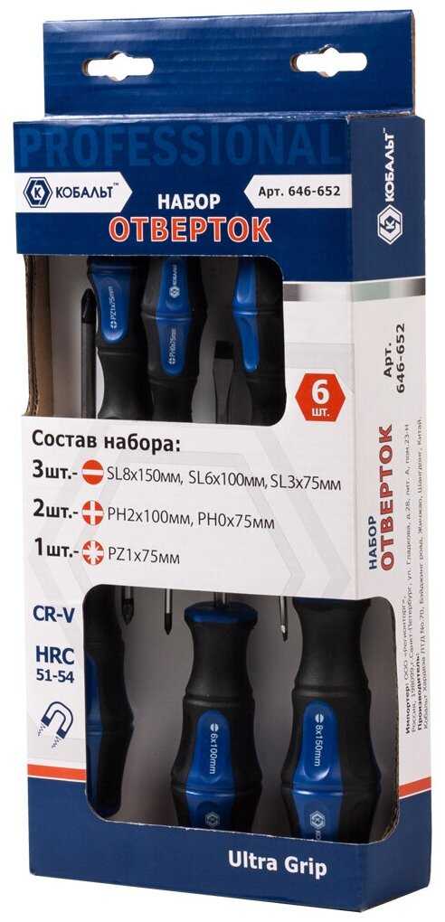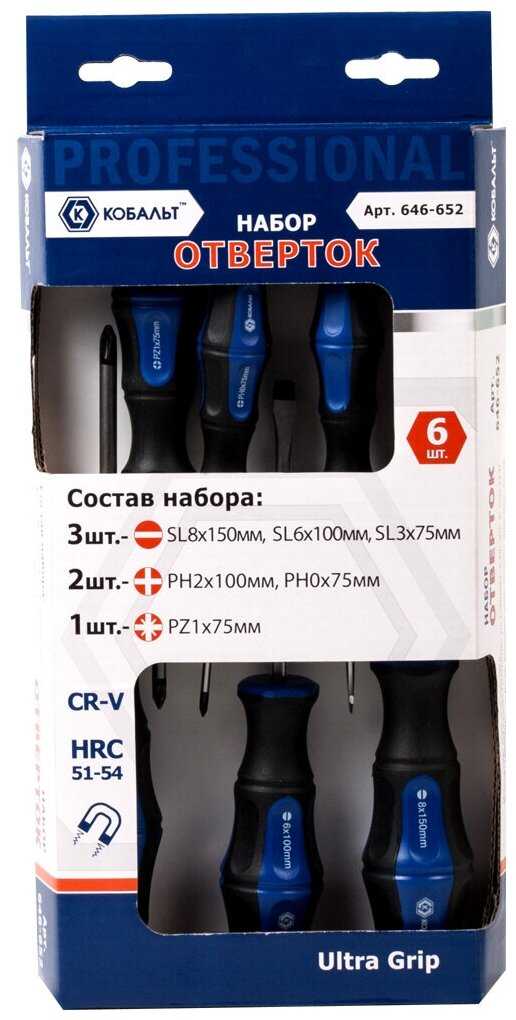Характеристи КОБАЛЬТ Набор отверток (646-652)