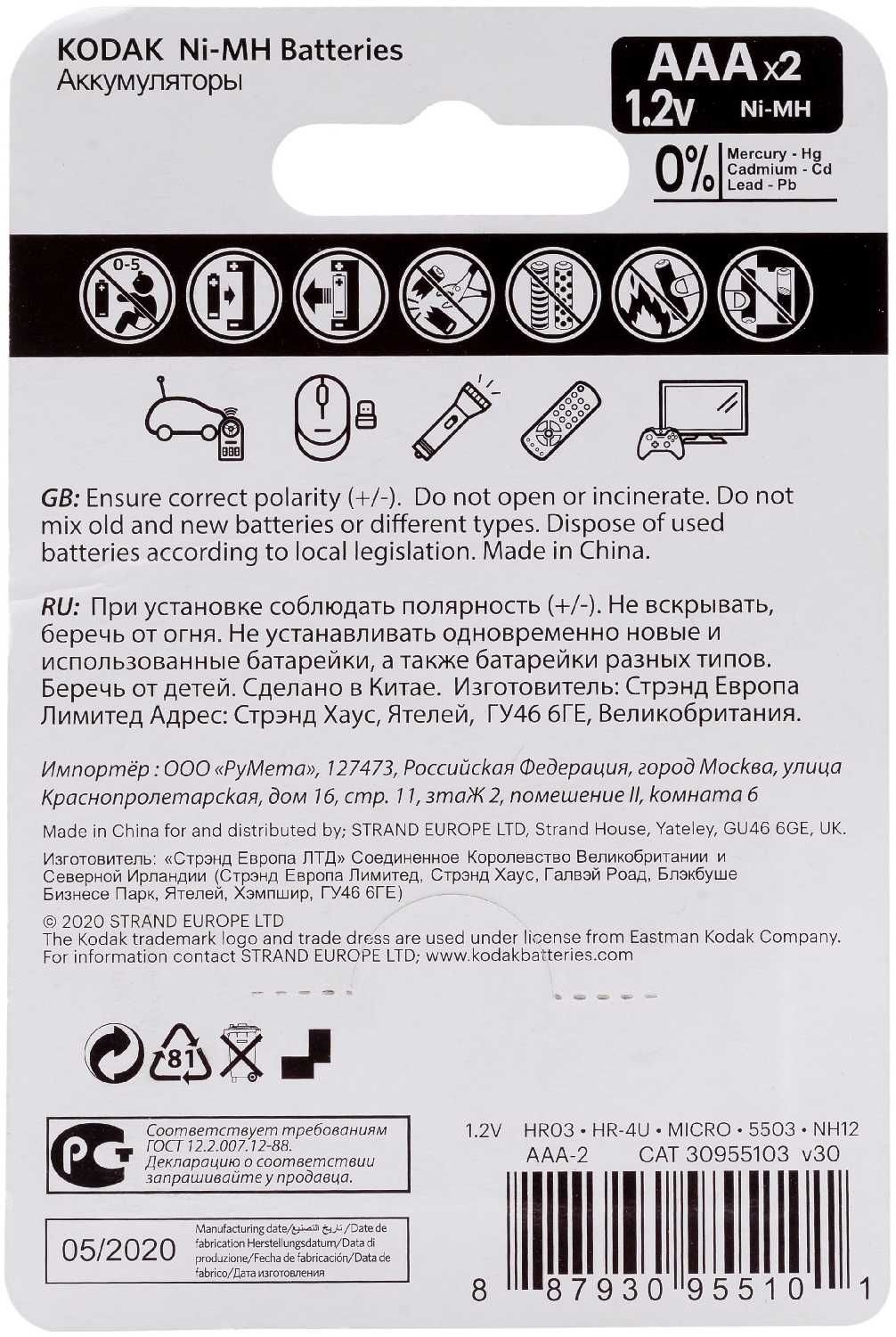 | Типоразмер : | AA (R6, LR6, FR6, HR6, ZR6), AAA (R03, LR03, FR03, HR03, ZR03, MN2400) |