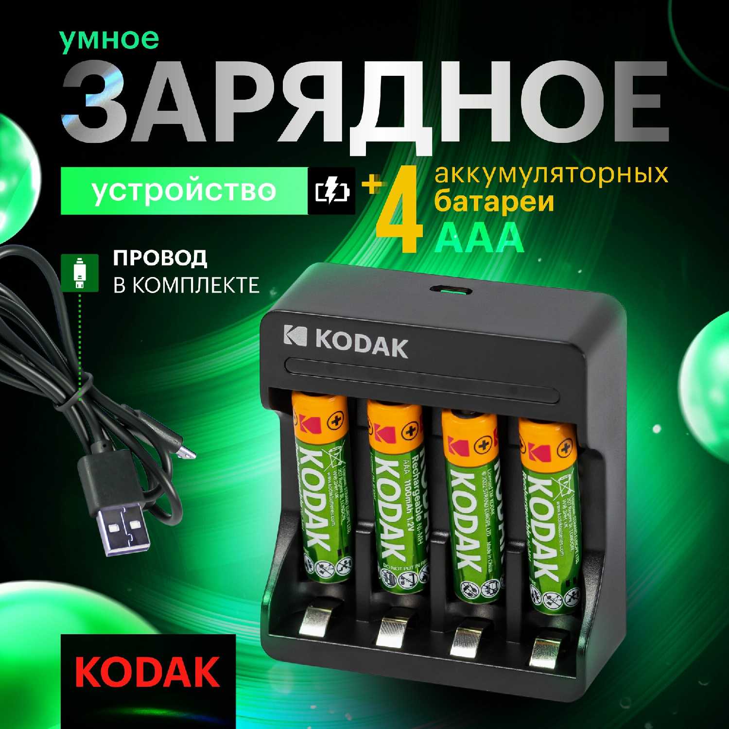 47 отзывов пользователей o Kodak Аккумуляторные батарейки AA (2700 mAh) + Зарядное устройство USB
