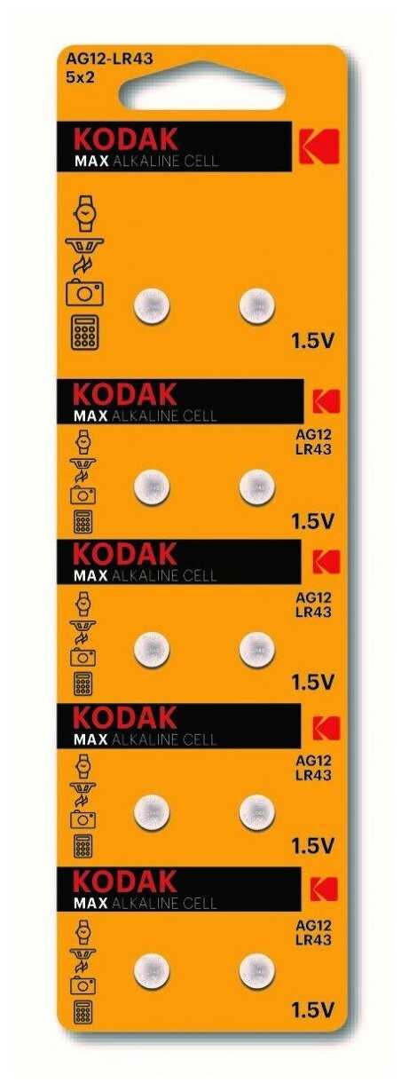 Лучшие цены сегодня на Kodak LR43 (LR1142, V13GA, AG12, G12, RW84) 10 шт