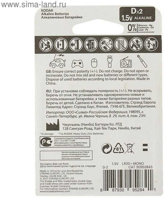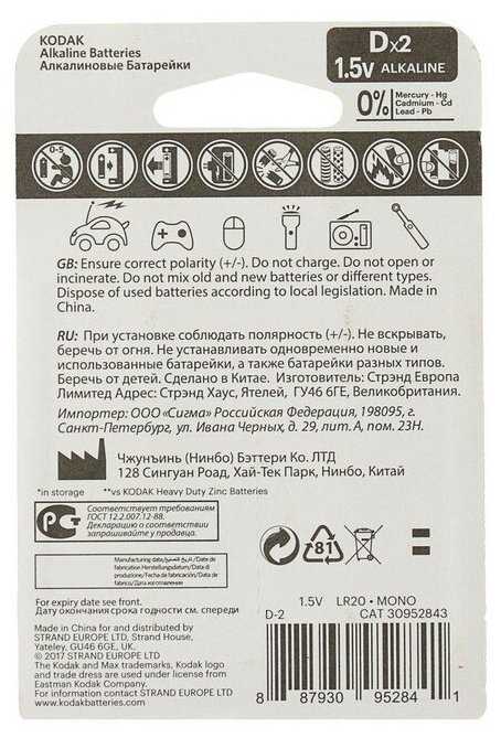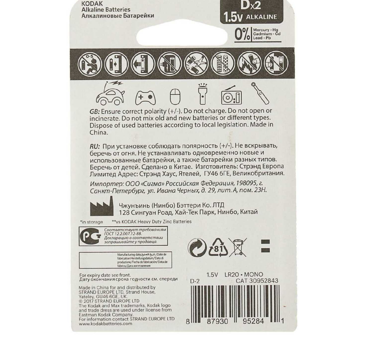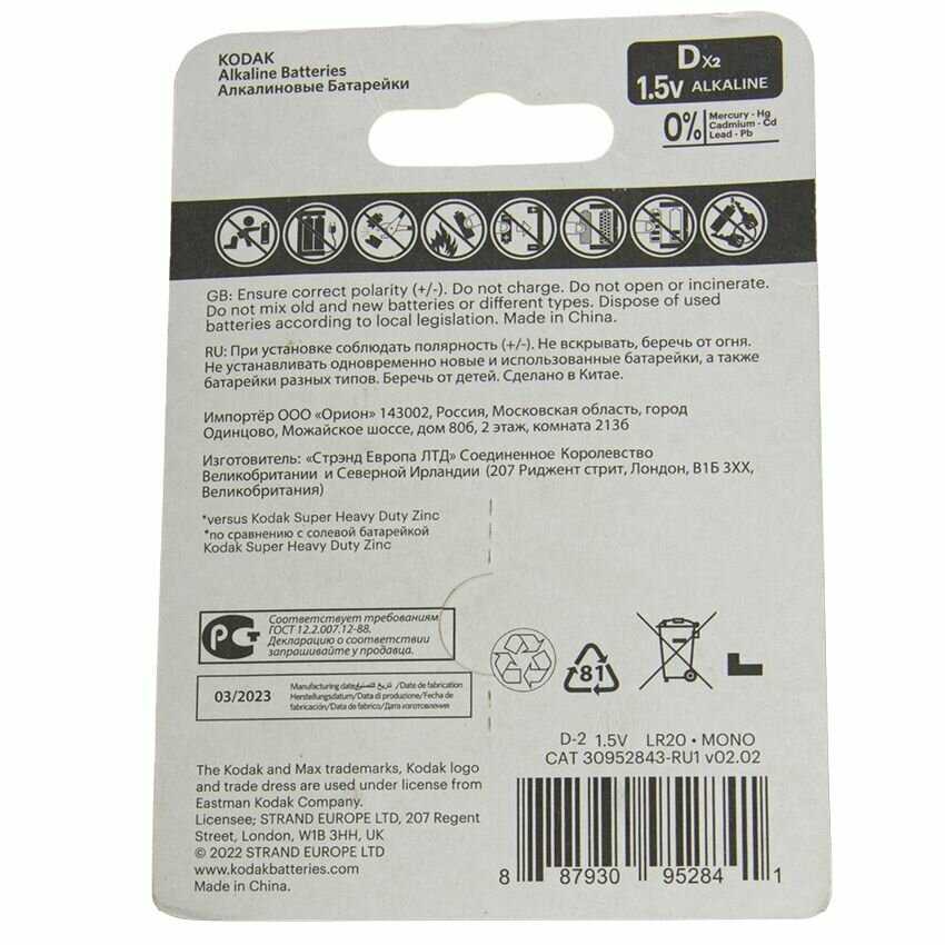 Лучшие цены сегодня на Kodak Max Super Alkaline D (LR20)