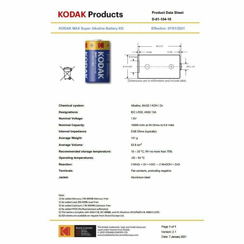 Характеристи Kodak Max Super Alkaline D (LR20)
