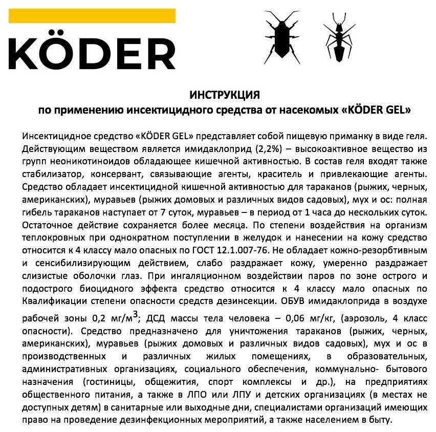 Характеристи KODER GEL серии ORGANIC, яд для тараканов