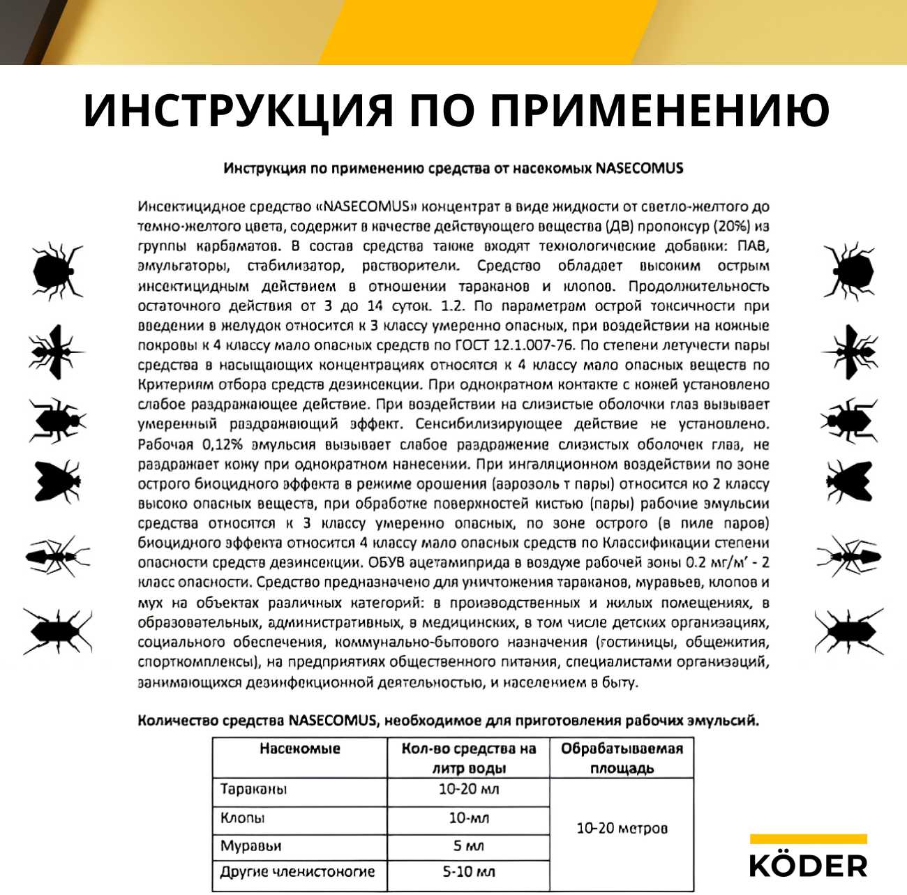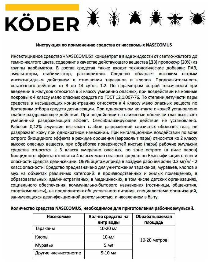Состав : | Пропоксур 20%, растворитель, ПАВ, эмульгаторы |