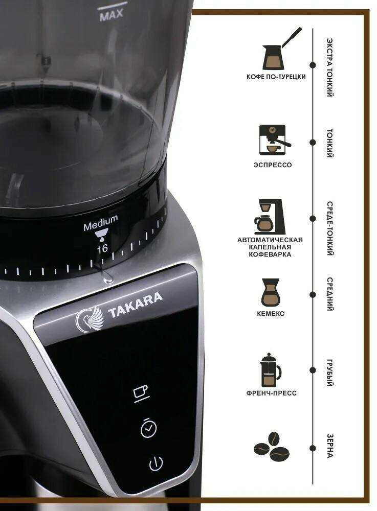 - особенности: выбор порции помола