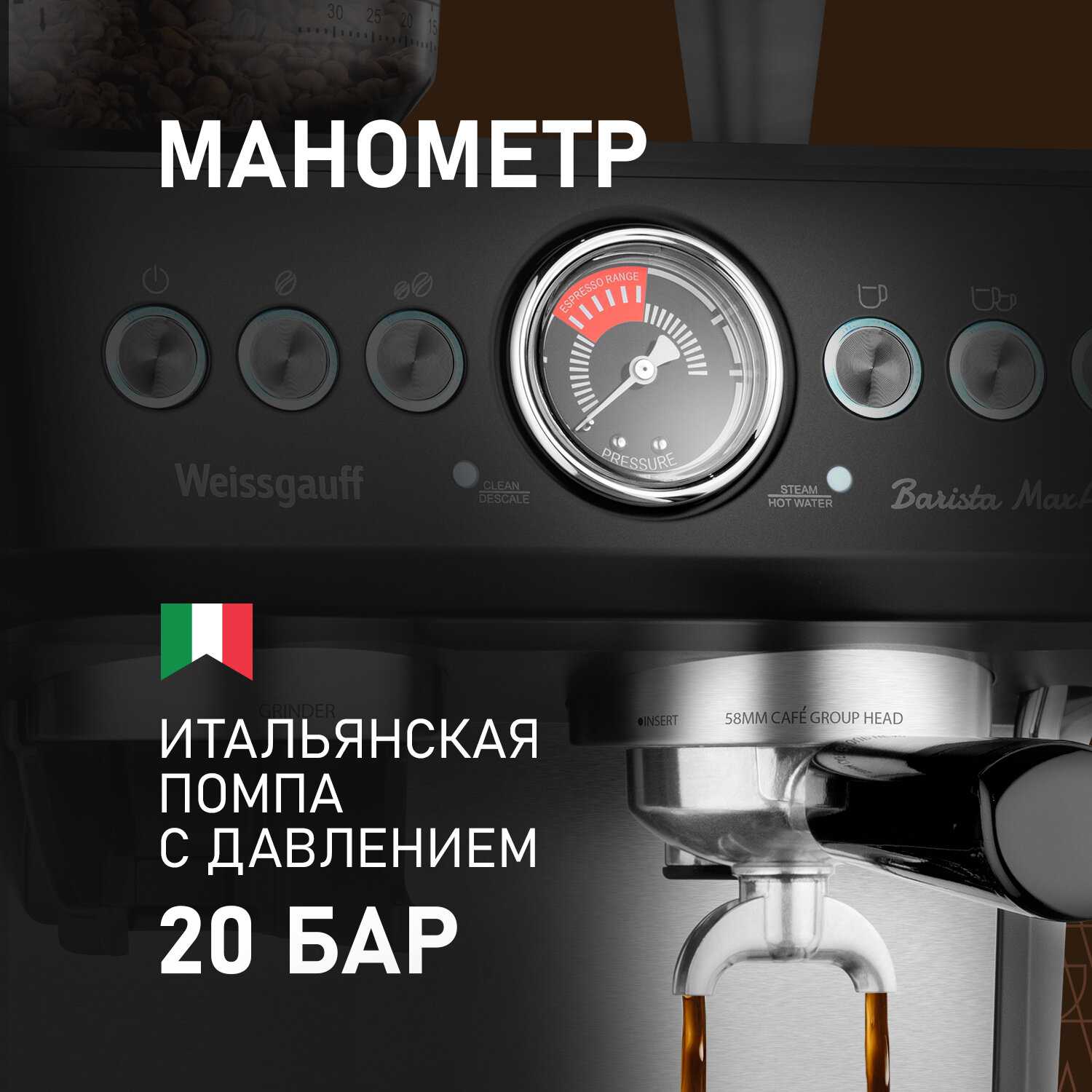 Pioneer со встроенной кофемолкой, профессиональной системой двойного бойлера, 5 уровней крепости кофе, 3 степени помола, 1250 Вт