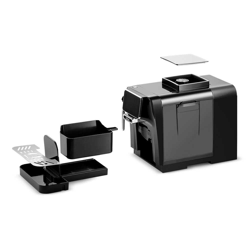 Характеристики:- автоматическая для зернового и молотого кофе управление со смартфона кофемолка с регулировкой степени помола контроль крепости кофе настройка температуры регулировка порции воды самоочистка от накипи приготовление капучино одновременная раздача на 2 чашки дисплей корпус из пластика
