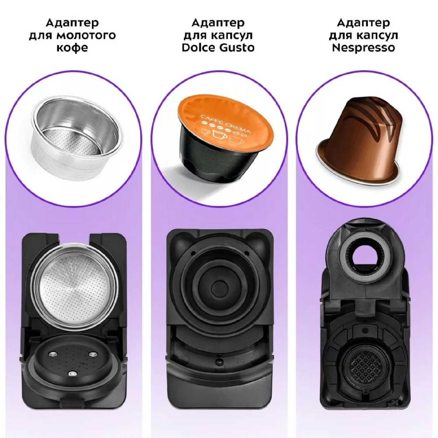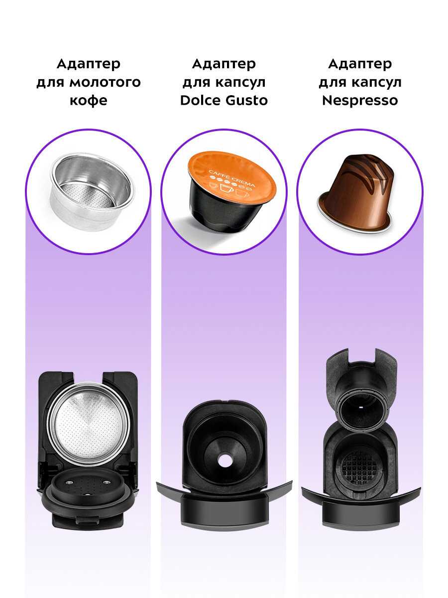 Характеристики:- Тип используемого кофе: молотый/капсулы