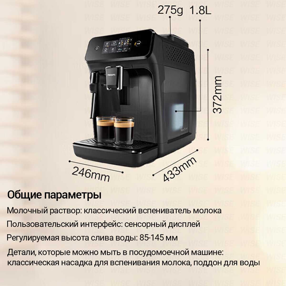 Характеристики:- Тип используемого кофе: зерновой