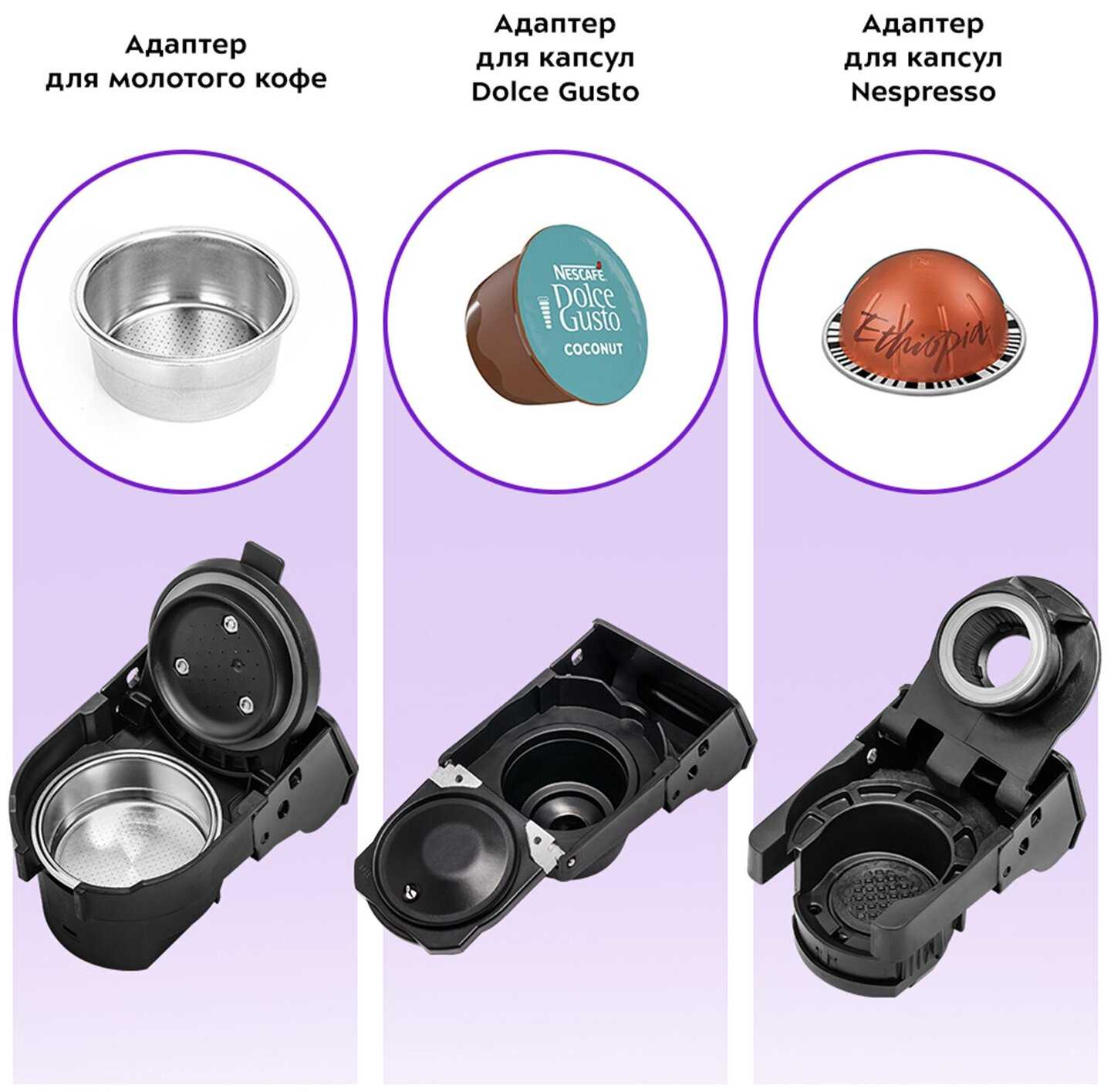 - тип используемого кофе: молотый/капсулы