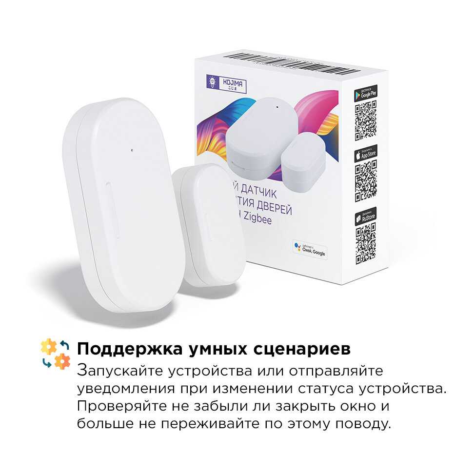 - Четко срабатывает на открытие/закрытие дверей и окон, включая свет в коридоре или паузу климата.