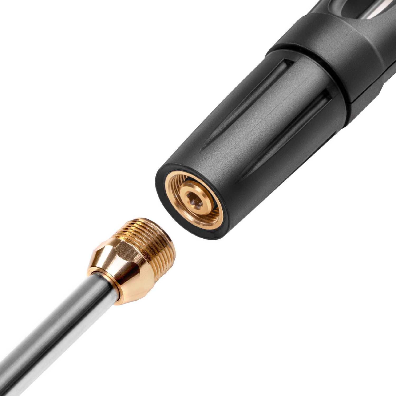 - Нет механизма быстрого отсоединения шланга от мойки, в отличие от пистолета.