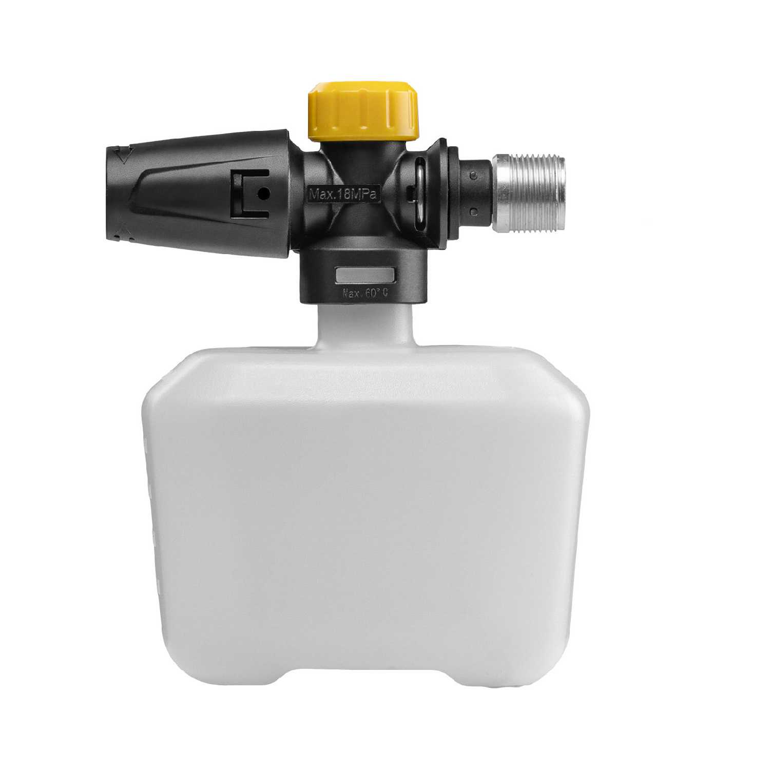 Пенообразователь часто оценивается негативно: пользователи отмечают слабое пенообразование и необходимость докупать более эффективные модели. Его конструкция с нестандартным диаметром 10 мм ограничивает совместимость с распространенными фильтрами на 14 мм. При этом некоторые владельцы добиваются хороших результатов, комбинируя его с качественными моющими средствами. Для интенсивного использования, например, мойки автомобиля с пеной, аппарат может потребовать апгрейда. -